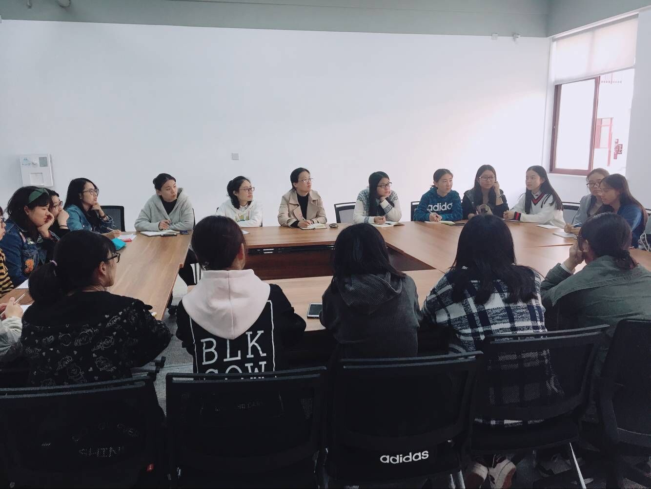 首先,会议由蒋朝群老师主持发言,请学生代表对这半学期各科教师的教学态度、教学质量、课堂纪律、作业布置等发表看法。之后,各班代表发表各自意见,主要有喜欢的科目及其原因,教师布置作业的难易程度,教师资格证的考取问题等。大家反映大部分老师上课认真,作业布置合理,难度适中。此外学生干部认为手机袋的推广促进了班风和学风的建设,增强了全系同学的守纪意识,并营造了系内良好的学习氛围,培养了同学们良好的学习兴趣。最后各位教师为学生干部今后的班级工作提供了建设性的建议。