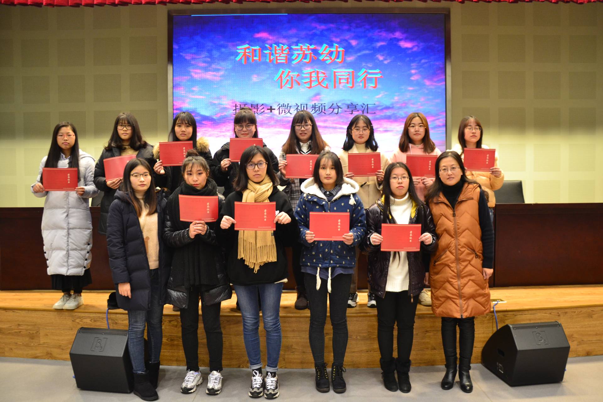 为了分享摄影成果、展示宿舍风采,我校高专学生会生活部于12月14日晚在报告厅进行了“和谐苏幼,你我同行”摄影、微视频分享汇活动。观看本次活动的老师有蒋朝群老师、谢慧娟老师,学生有高专各年级各班的代表。