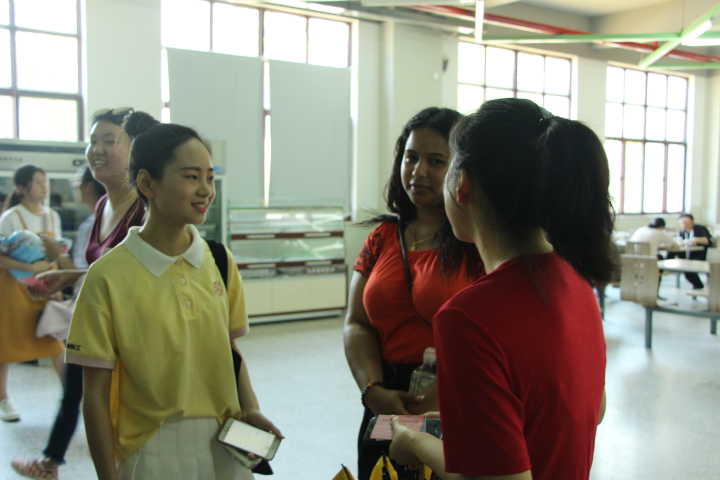 上午9:40,实习生团队到达我校并在艺术楼观摩了我校的技能课,分别有美术、钢琴、舞蹈和声乐。中午11:45,学前二系的16位学生代表接待了来访客人。学生代表们两人一组,一同接待外宾。首先,同学们带领外宾参观了我校食堂,带外宾们体验了用现金充值一卡通和排队买饭。外宾表示很喜欢我校食堂丰盛美味的饭菜,并且对我校学生良好的就餐秩序和礼仪赞不绝口。在聊天中,同学们了解到外宾们对钢琴很感兴趣。于是,苏幼之旅的第二站,外宾们选择了琴房。一进门,外宾们便被悠扬的琴声吸引了,露出赞赏的表情。闲谈中,我们了解到,乔治布朗学院没有琴法这门课程,她们十分羡慕我校学生可以学习钢琴并且每天与音乐相伴。接着,同学们带领外宾参观了学生宿舍。外宾们对六人间的格局表示十分惊讶,因为加拿大大多都是单人间或两人间。“6个姐妹一起住,总觉得会很温馨”,Hamsananthy这样说道。参观之余,二系174班的冷一凡同学为外宾们表演了舞蹈——扇子舞,获得了外宾的高度好评。最后,同学们带领外宾们参观了图书馆的绘本区,向她们展示了我校一系学生完成的英文绘本。下午1:30,来自乔治布朗学院的Kimberly Bezaire博士在合班教室B开展了小型讲座《Play Based Curriculum》(寓教于乐),学前二系部分同学参加了本次讲座,在积极愉快的气氛中,同学们对游戏课程有了新的认识。