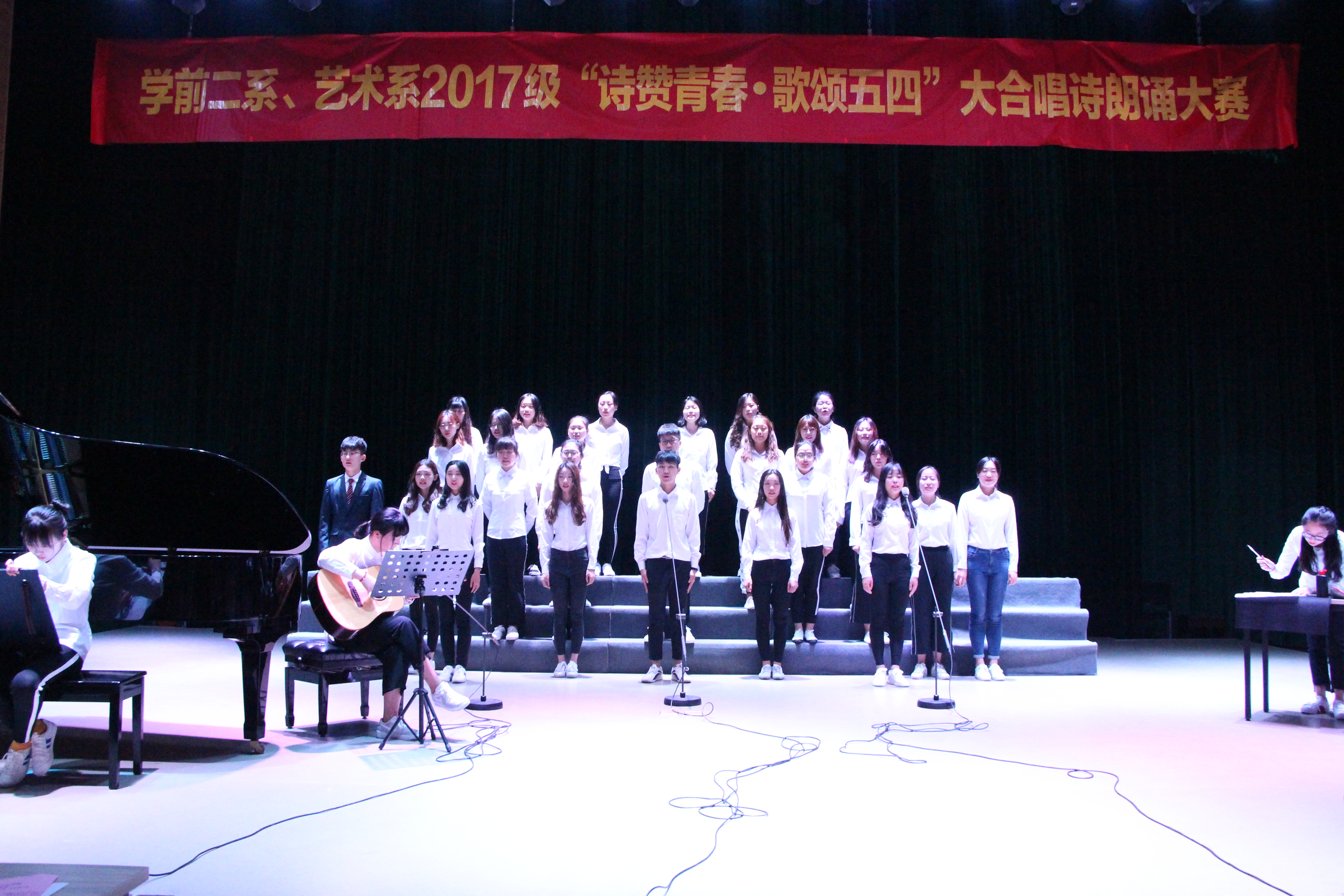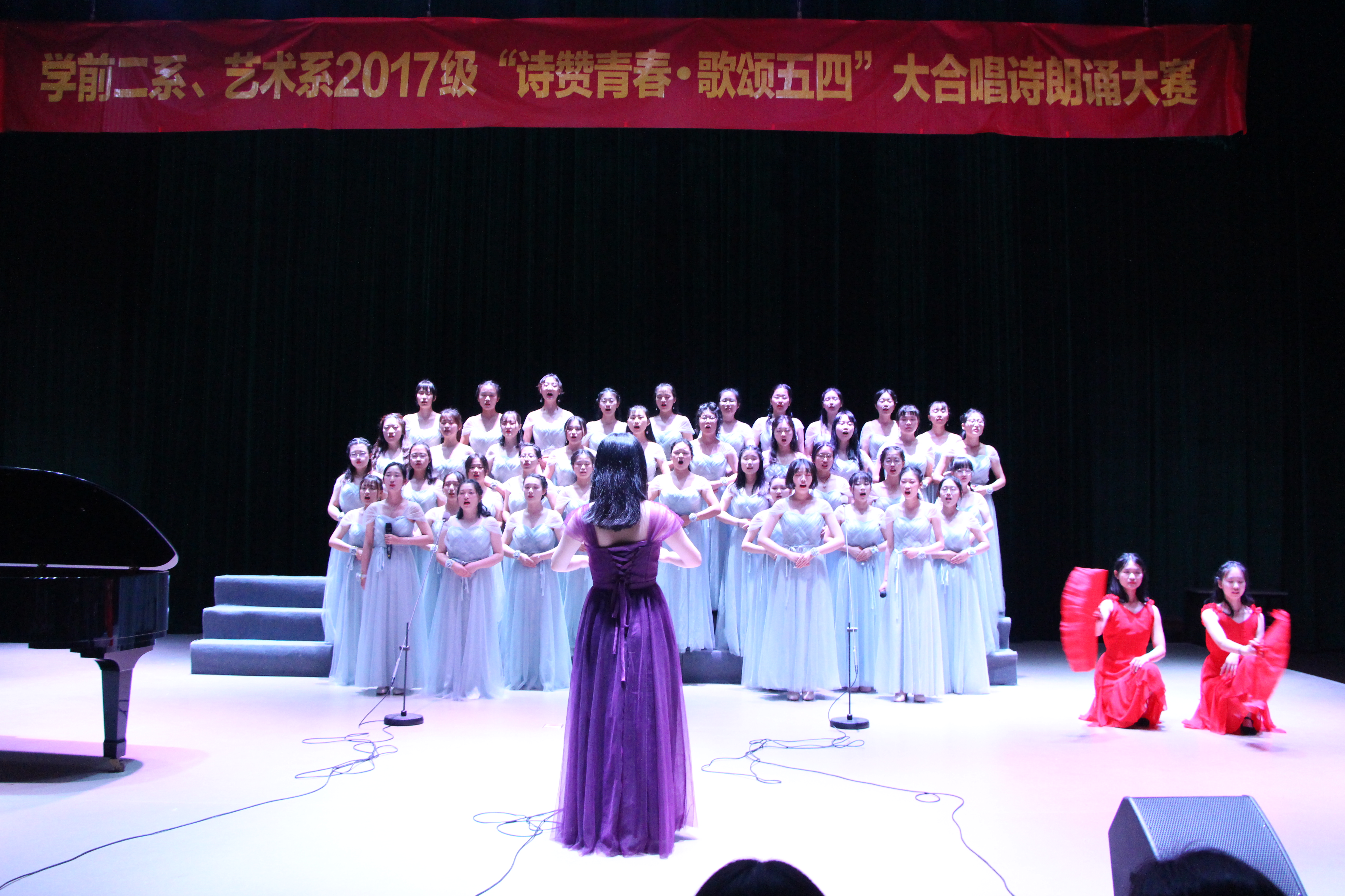 为了纪念五四运动,弘扬五四精神,5月17日,我校学前二系艺术系17级在演奏厅举行了以“诗赞青春·歌颂五四”为主题的大合唱朗诵比赛。二系蒋朝群、刘若诗、倪莹老师。艺术系王婉青主任、曹静、高鑫、谢慧娟等老师作为评委出席了本次比赛。