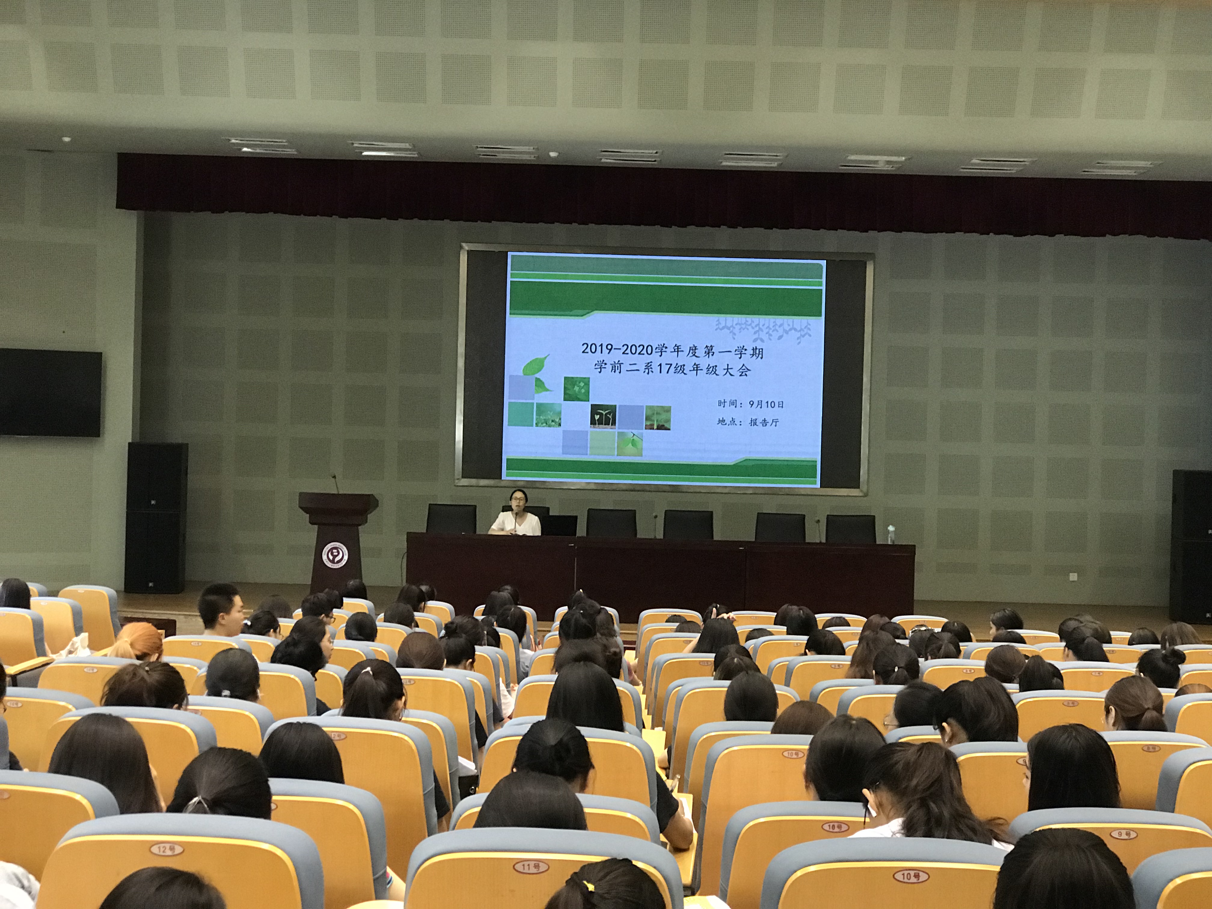 为了迎接新学期,对新学期的新工作作出指导,学前二系于9月10日下午1点30分在报告厅召开2019——2020学年第一学期17级年级大会。辅导员倪莹、学前二系17级全体同学出席这次年级大会。