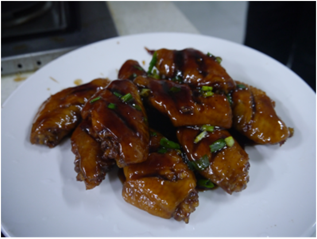 “这是我们做的煎香肠,蘸上这个自制的酱料,味道会更加棒哦!”