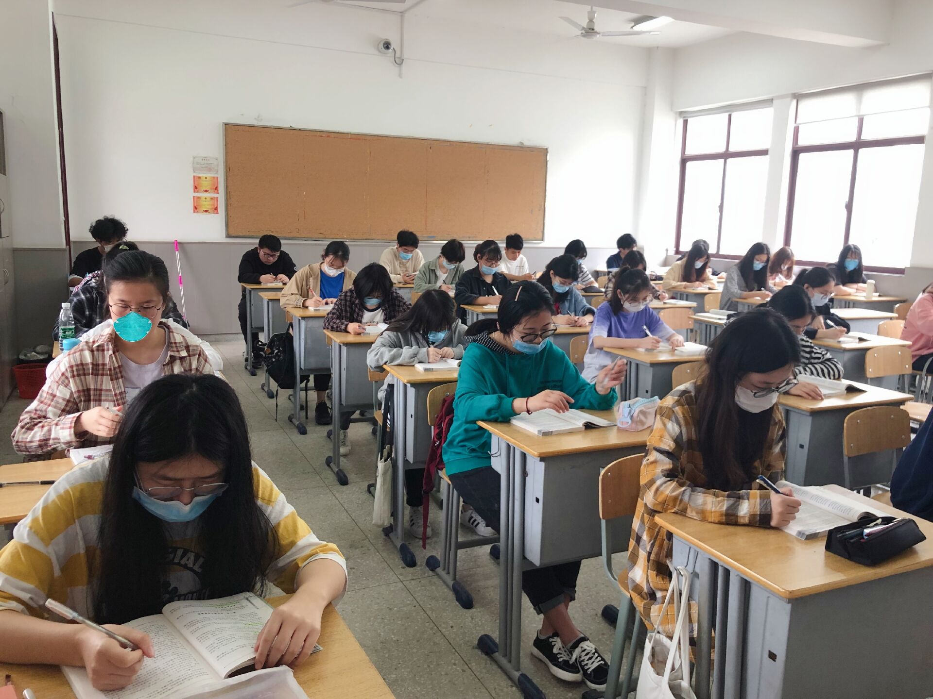 经过前两周的宿舍隔离期,老师和同学们终于能够回到教室进行线下教学活动。各位老师面带笑容、热情洋溢地走进教室,再次见到这一张张熟悉的面孔,久违的课堂氛围也愈渐热烈起来。见面第一课,专业课老师与大家交流总结了同学们寒假期间的网课学习情况,提出相应的学科考察要求,同时带领大家翻阅教材复习网课已学的部分内容,并结合同学们的线上作业和测试情况再做一些重点讲解。形势与政策等合班课延续网络课程的形式进行分班上课,一个班级在合班教室进行线下课,另一个班级则进入专用教室观看直播课堂。合班课堂内的同学需要按照校园防疫要求保持间隔入座,以确保身体健康安全。