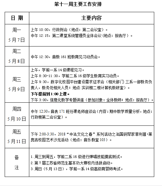 学校第十一周工作安排