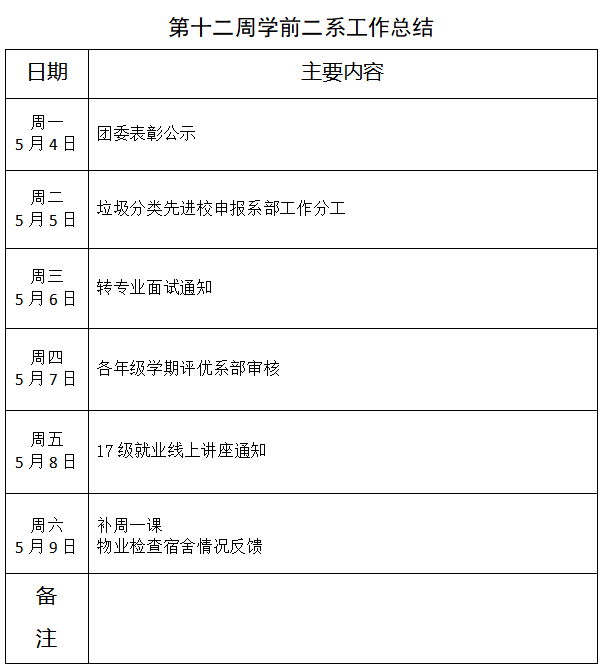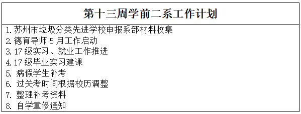 系部第十二周工作总结及第十三周工作计划