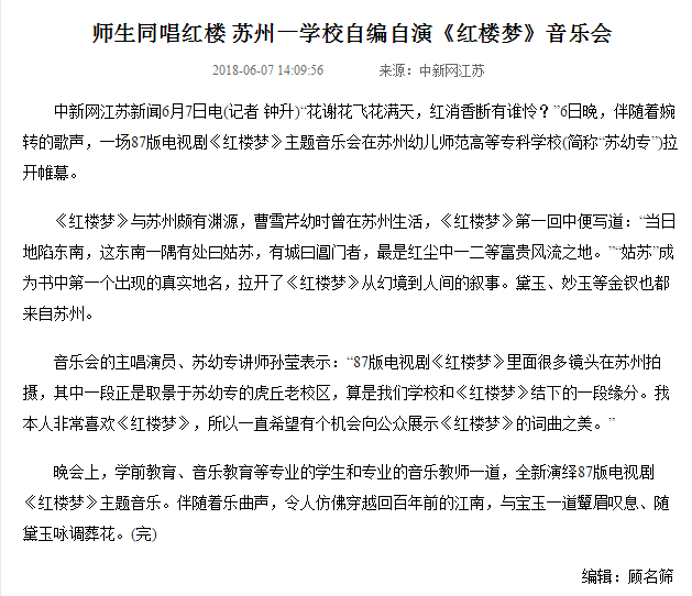 师生同唱红楼苏州一学校自编自演《红楼梦》音乐会