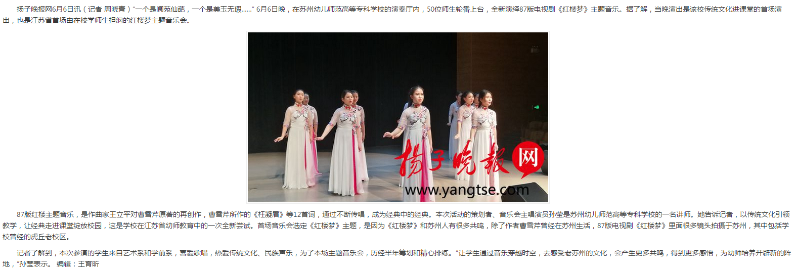 苏州幼专师生重现红楼梦音乐传奇