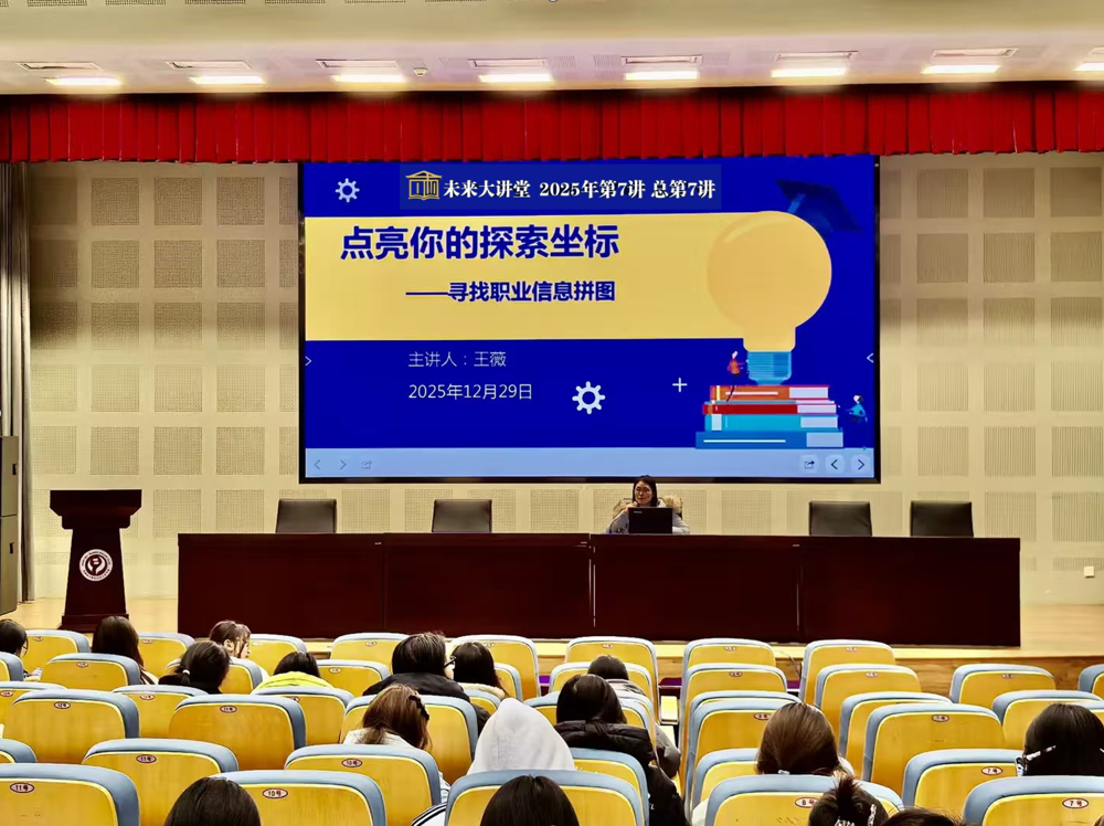 未来大讲堂,点亮成长路。为帮助学生明晰职业方向、提升职业探索能力,12月29日18点,由学工处主办、筑梦领航辅导员工作室承办的讲座“点亮你的探索坐标——寻找职业信息拼图”顺利开讲。本次讲座由筑梦领航辅导员工作室成员王薇老师主讲。