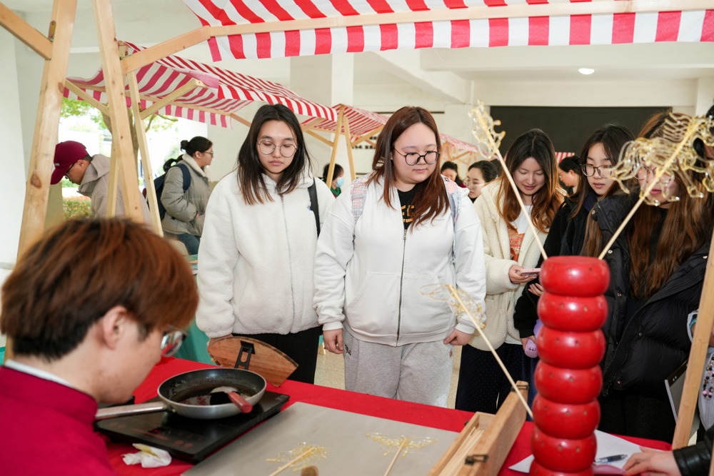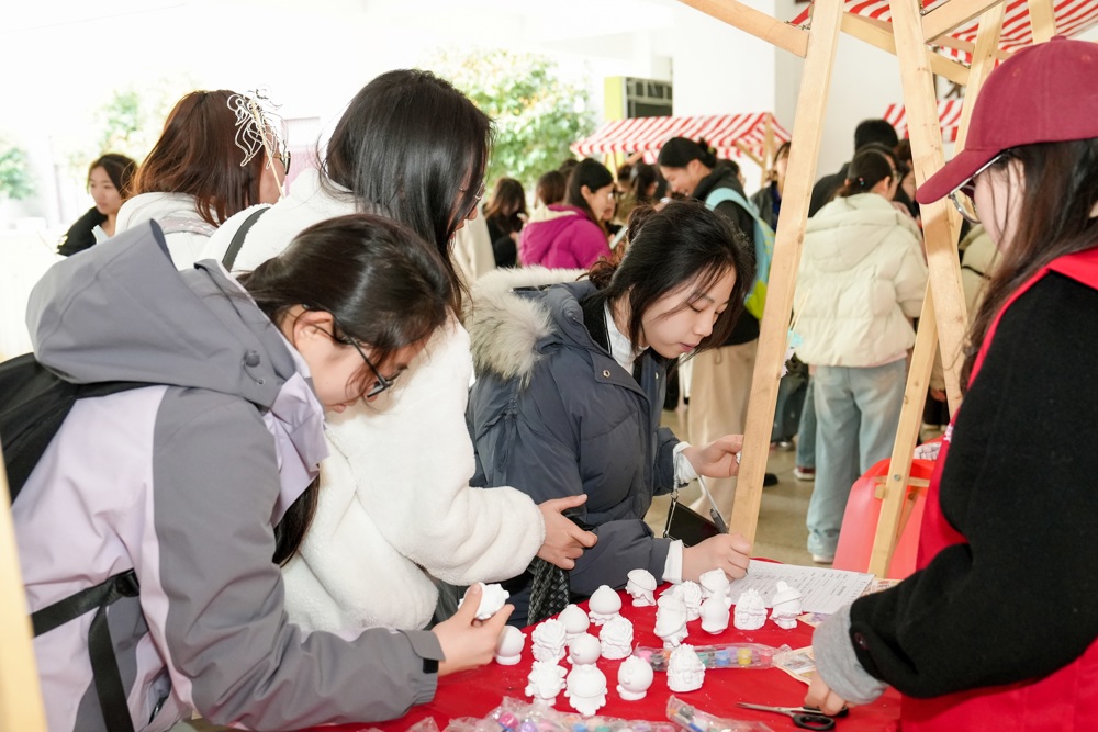 活动现场,就像一个沉浸式的“快乐工坊”。八个各具特色的摊位依次排开,非遗糖画与DIY发簪让传统技艺在年轻人的手中焕发生机,手工棉花糖与石膏娃娃手作唤起纯真童趣,投壶游戏与套圈游戏带来欢声笑语,“烦恼丢丢丢”游戏则为情绪疏导提供了轻松出口。现场还贴心设置了视力检查摊位,提示每个人都要真正成为“自己身心健康的第一责任人”。一件件充满童趣的作品,一次次真诚温暖的交流,如同爱的春风细雨,悄然滋润着师生们的心田,也照亮了每个人心里的那片天空。师生们在创作中释放压力,在游戏中体验快乐,在互动中增进情谊,在分享中传递温暖。