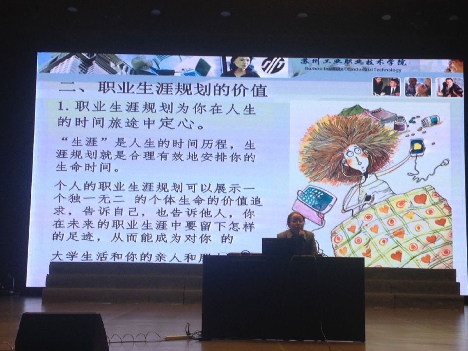 为了让同学们更好的掌握生活的罗盘,做到“我的大学我做主,我的未来我谋划”,我校学前1系于2016年12月6日晚18:30在演出厅举行了职业生涯规划讲座活动。本次讲座有幸邀请到苏州工业职业技术学院梁青春副教授来和我系全体13级同学一起畅谈职业生涯规划。
