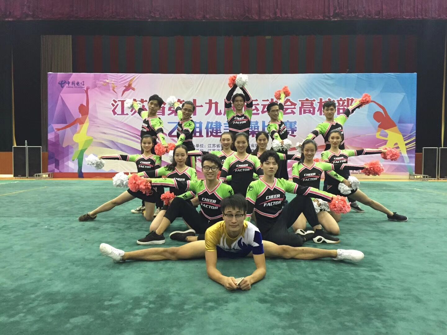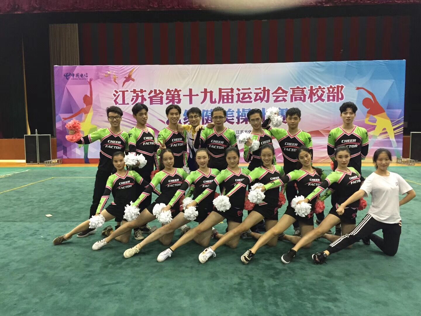 2017年9月25日至27日,由江苏省教育厅、江苏省体育局主办,江苏省学生体育协会高校工作委员会协办的江苏省第十九届运动会高校部乙组健美操比赛在徐州工业职业技术学院体育馆隆重举行,来自全省15所高职院校240余名运动员参加了本次比赛。这是我校升为高校后首次参加省高校组的健美操比赛,在李小和、席菲菲和张如磊老师的带领下,我校运动员以娴熟的技术和高难度动作征服了裁判,获得了花球啦啦操比赛的第一名。