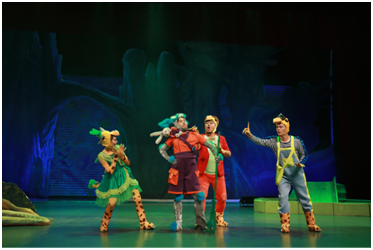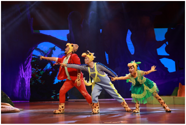 儿童歌舞剧《恐龙的宝藏》改编自著名儿童文学作家、我校88级优秀毕业生王一梅的同名长篇童话作品,讲述虚形龙三兄妹阿迪、阿木、阿莉在古拉国寻宝的过程中,努力成长、打败邪恶,最后收获宝藏的故事。