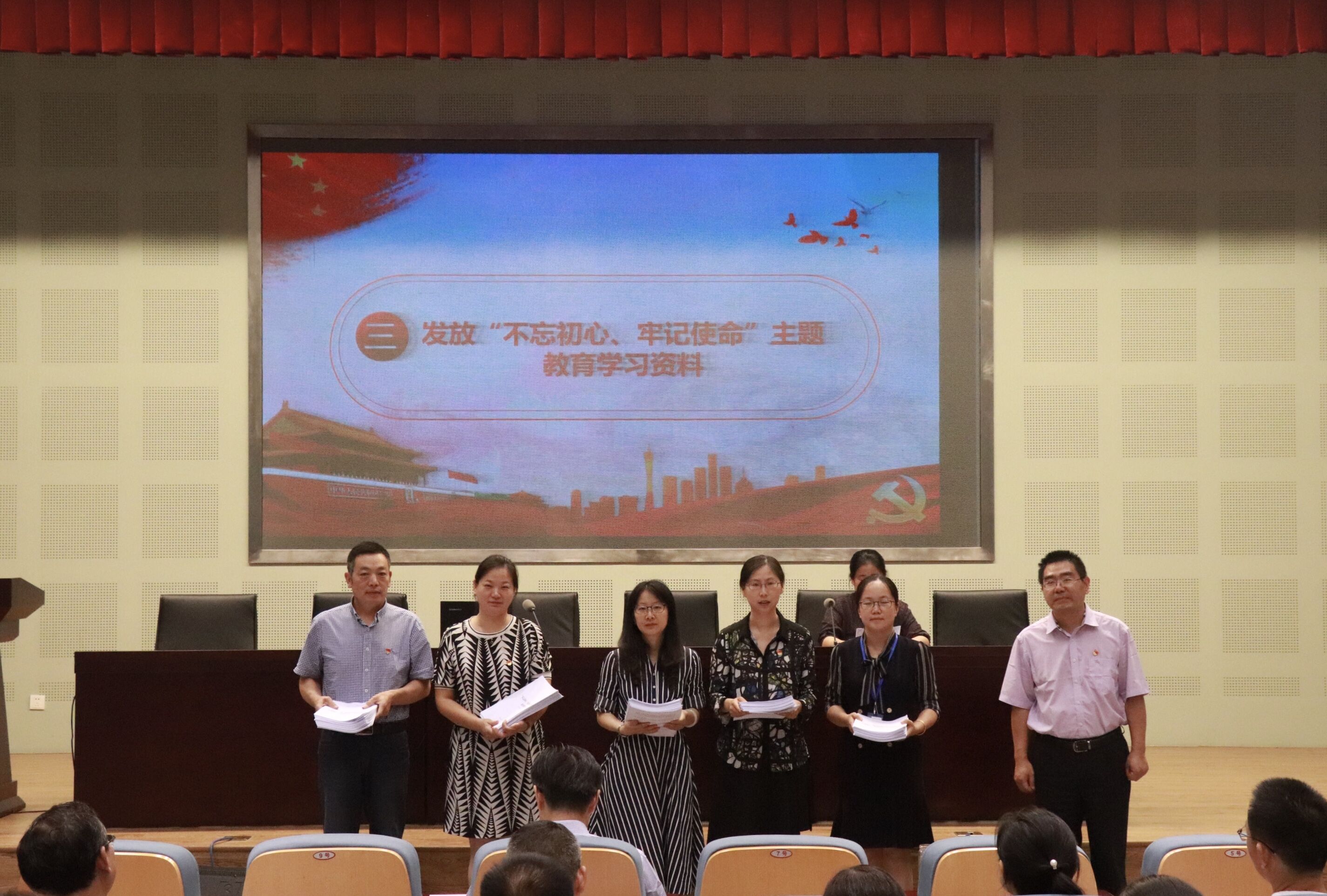 会议第二项议程是陶华山副校长向各支部派发《“不忘初心、牢记使命”主题教育》学习资料。校党委希望全体党员能充分利用好《应知应会》《习近平新时代中国特色社会主义思想学习纲要》等材料,认认真真读原著学原文悟原理,将主题教育学习落在实处。