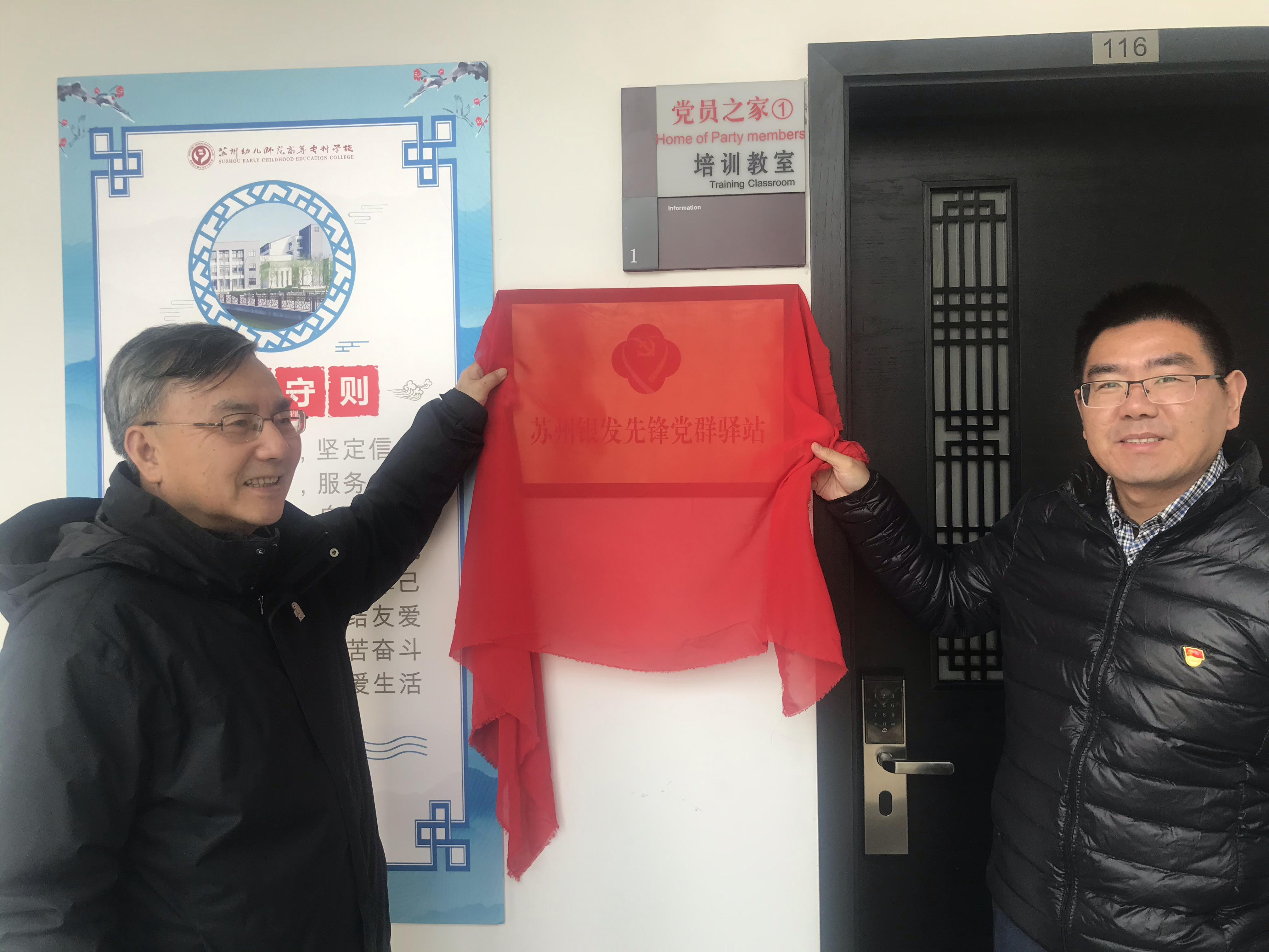 12月3日上午,我校我校离退休支部“苏州银发先锋党群驿站”揭牌成立,陶华山副校长、离退休支部书记汪乃铭共同为驿站揭牌。