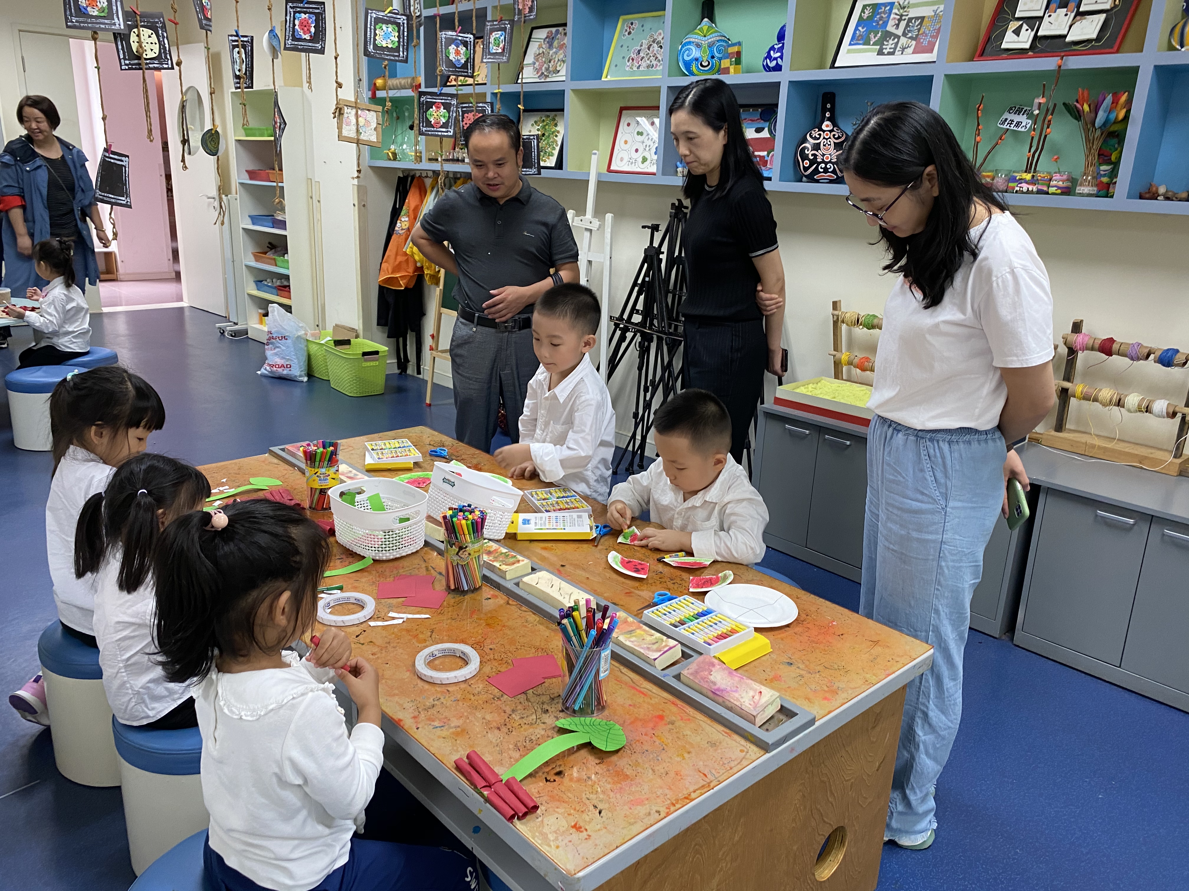 在花朵幼儿园,付蓉园长一行在田鸿园长、罗静副园长陪同下,参观了幼儿园的整体环境,硬件设施、班级环境、室内外专用室场等,付蓉园长一行对我校花朵幼儿园自然生态的环境、有特色的班级课程环境以及丰富的游戏材料给予了高度的评价。在参观完整体环境后,田鸿园长就幼儿园的办园理念、园所情况和课程特色进行了交流分享,同时对园长们提出的问题进行了答疑。