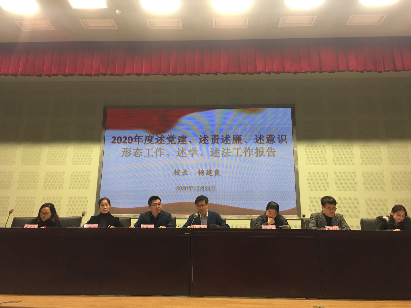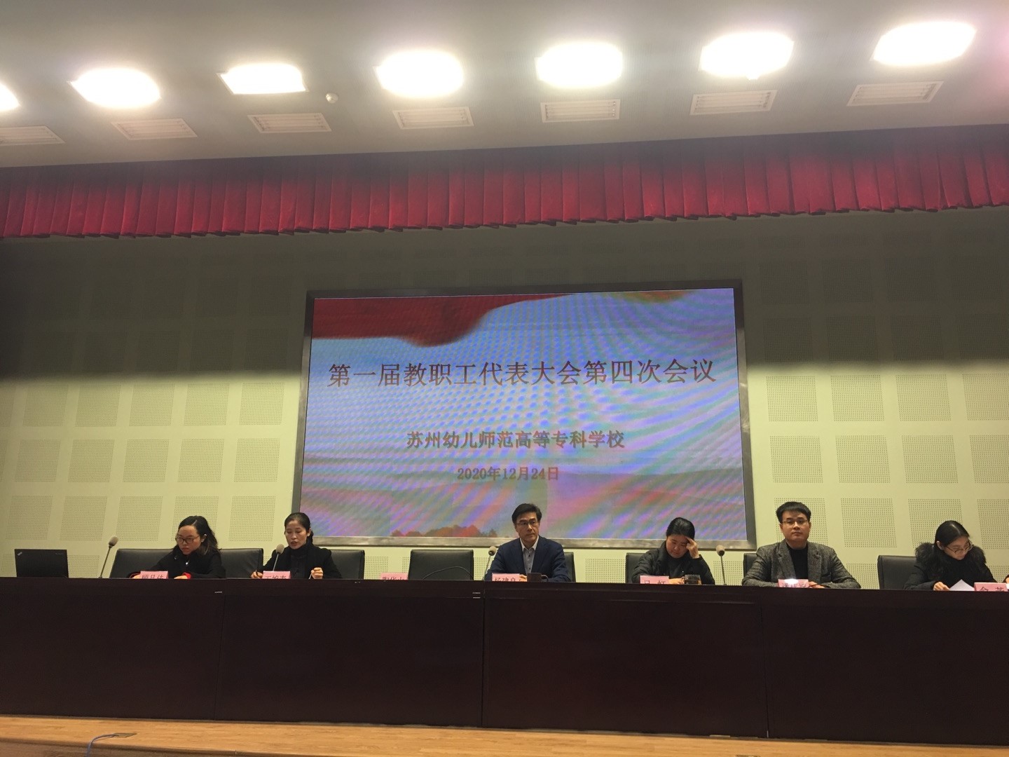 12月24日下午,我校第一届教职工代表大会第四次会议在校照怀楼报告厅召开,全体教代会代表、全体党员、全体中层以上干部出席了大会。会议由工会副主席王婉青主持。