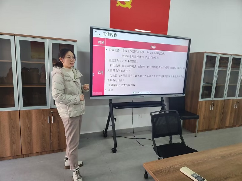接着,会议的第二部分内容是布置本学期工作。席老师就上半年教研室工作总目标与具体每月的工作内容做了介绍。席老师提出,上半年工作总目标:一是,狠抓师风师德建设;二是,提升教师教学质量;三是,助力音教、音表专业的内涵建设。