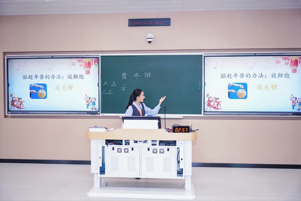 当天下午是“模拟授课”的比赛环节,选手们拿到选题后先用90分钟进行课件制作与授课构思,将“粉笔字书写”与“口语表达”两个能力考核点融入其中,展示8分钟教学片段。赛场上,两位选手都满怀信心,用自己独特的教学风格传递教育温度与力量,同时也传递出艺术之美。