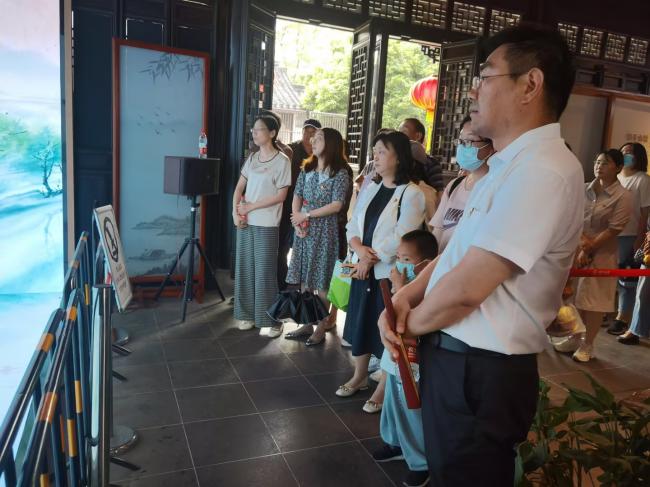 玉涵堂是一座明代建筑,其名取"君子于玉比德"之意。现场,大家时而驻足观看,时而交流讨论,通过了解吴一鹏的生平事迹,深入体会到了“玉比修身”的道德标准,感受廉政文化与江南文化、运河文化深度融合。