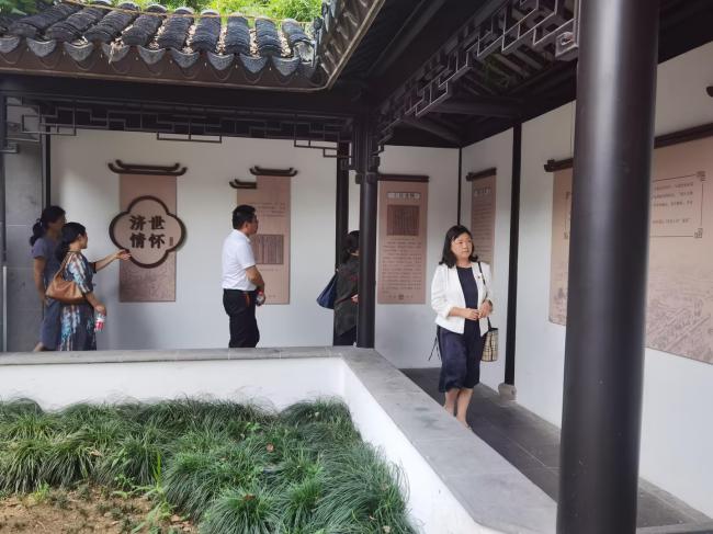 在白居易纪念苑,大家认真聆听讲解员对白居易任苏州刺史期间,体恤百姓疾苦、修筑七里山塘、开凿山塘河、疏通河道淤塞的事迹介绍,深切感悟一代先贤为官为人的高尚情怀和代代相传的优良家风。
