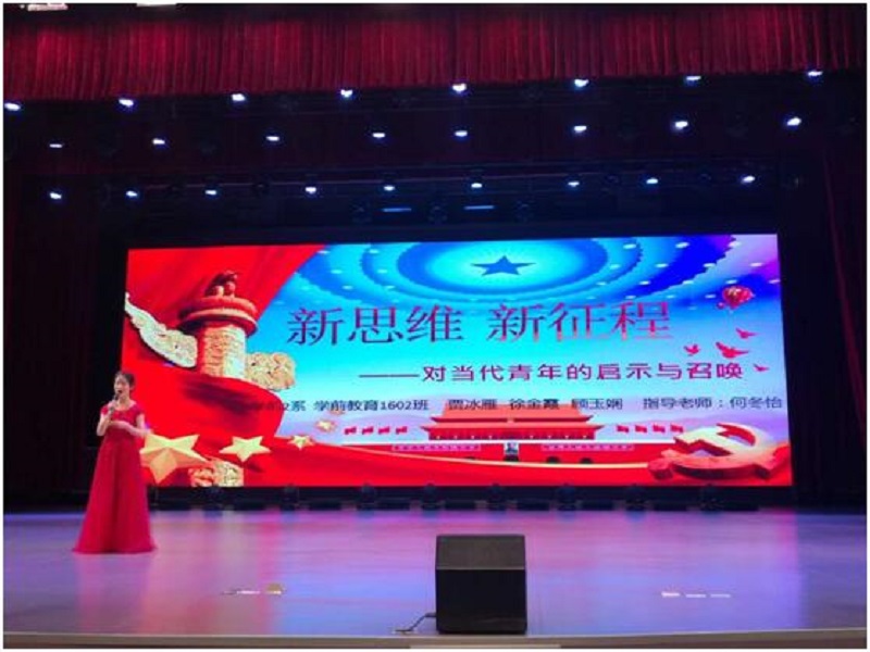 经过两个月的精心一对一辅导,荣获一等奖的六组同学在4月3日党委、学工处组织的《走近十九大青春辉映新时代》PPT展示宣讲会暨表彰会中表现杰出。六组同学用自己的设计表达了对十九大“新时代、新使命、新思想、新征程”的理解、对新时代的社会主要矛盾的认识、对新时代下的教育和学前教育的思考,对当代青年大学生应担当的时代责任的追问。