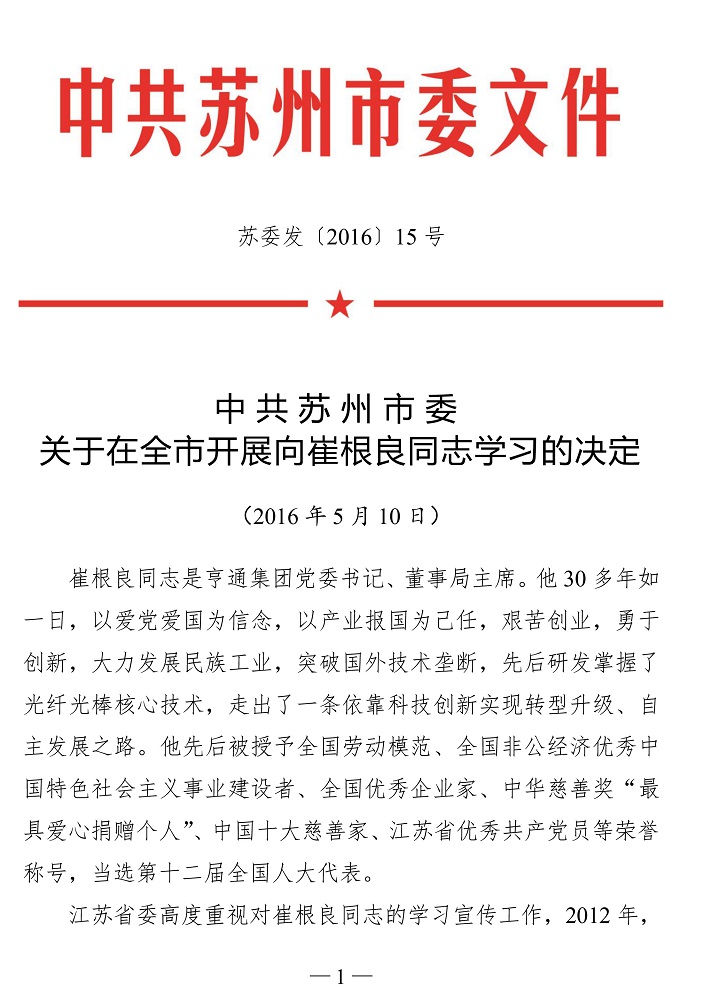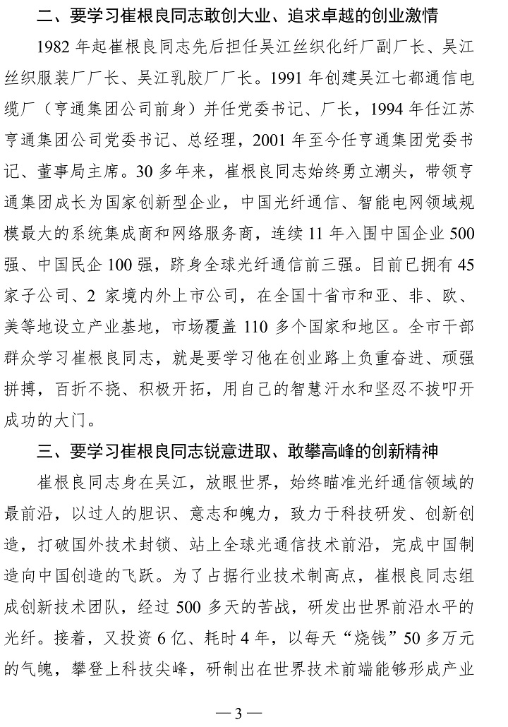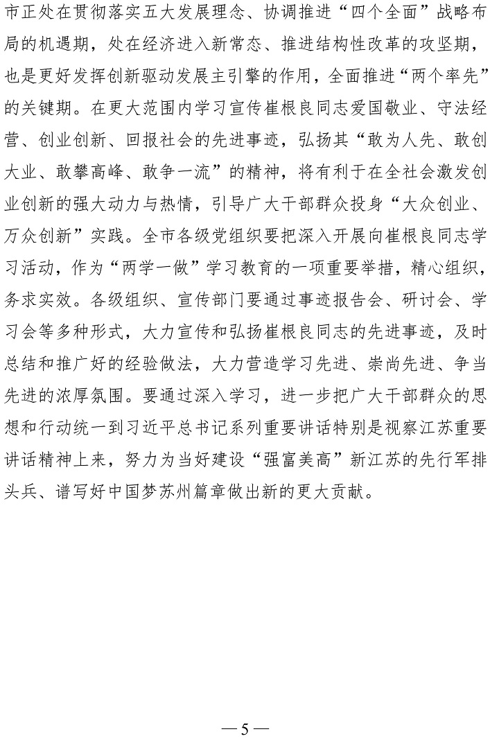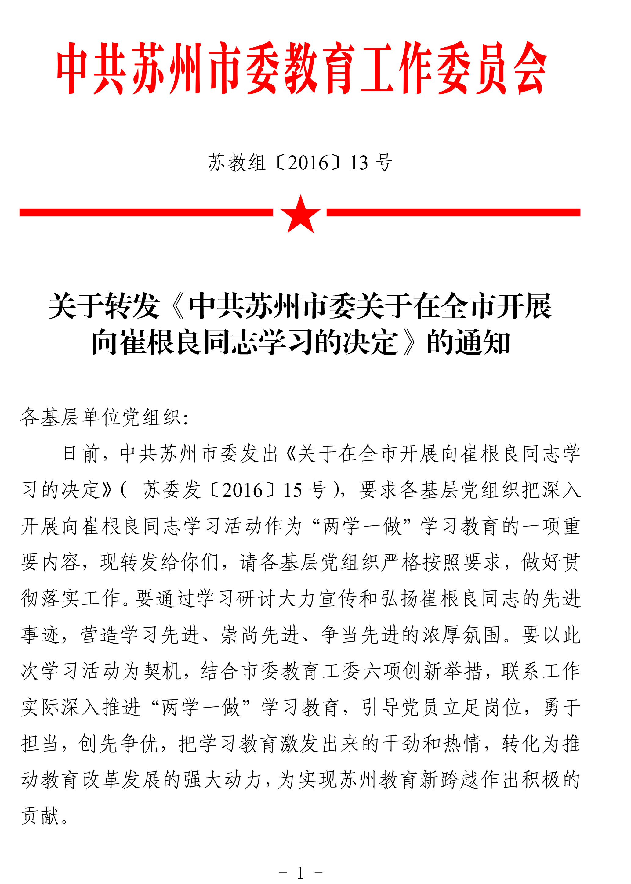 关于转发《中共苏州市委关于在全市开展 向崔根良同志学习的决定》的通知