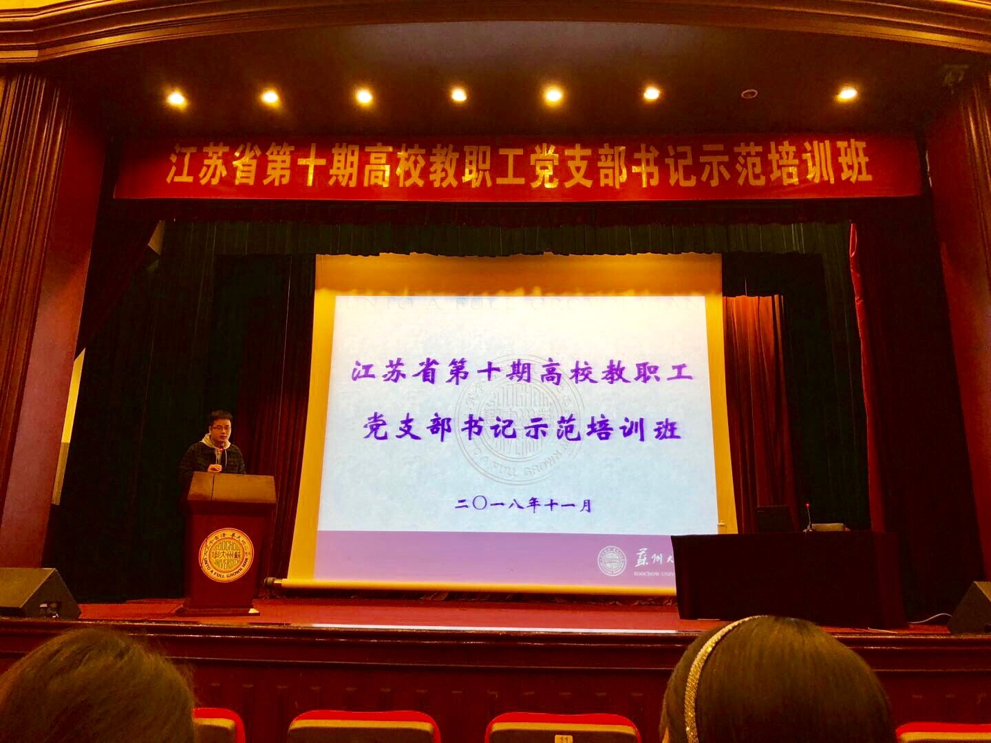 2018年11月6日—9日,江苏省第十期高校教职工党支部书记示范培训班在苏州大学举行,来自全省各高校的130多名支部书记参加,我校组织人事处潘伟斌副处长参加培训。