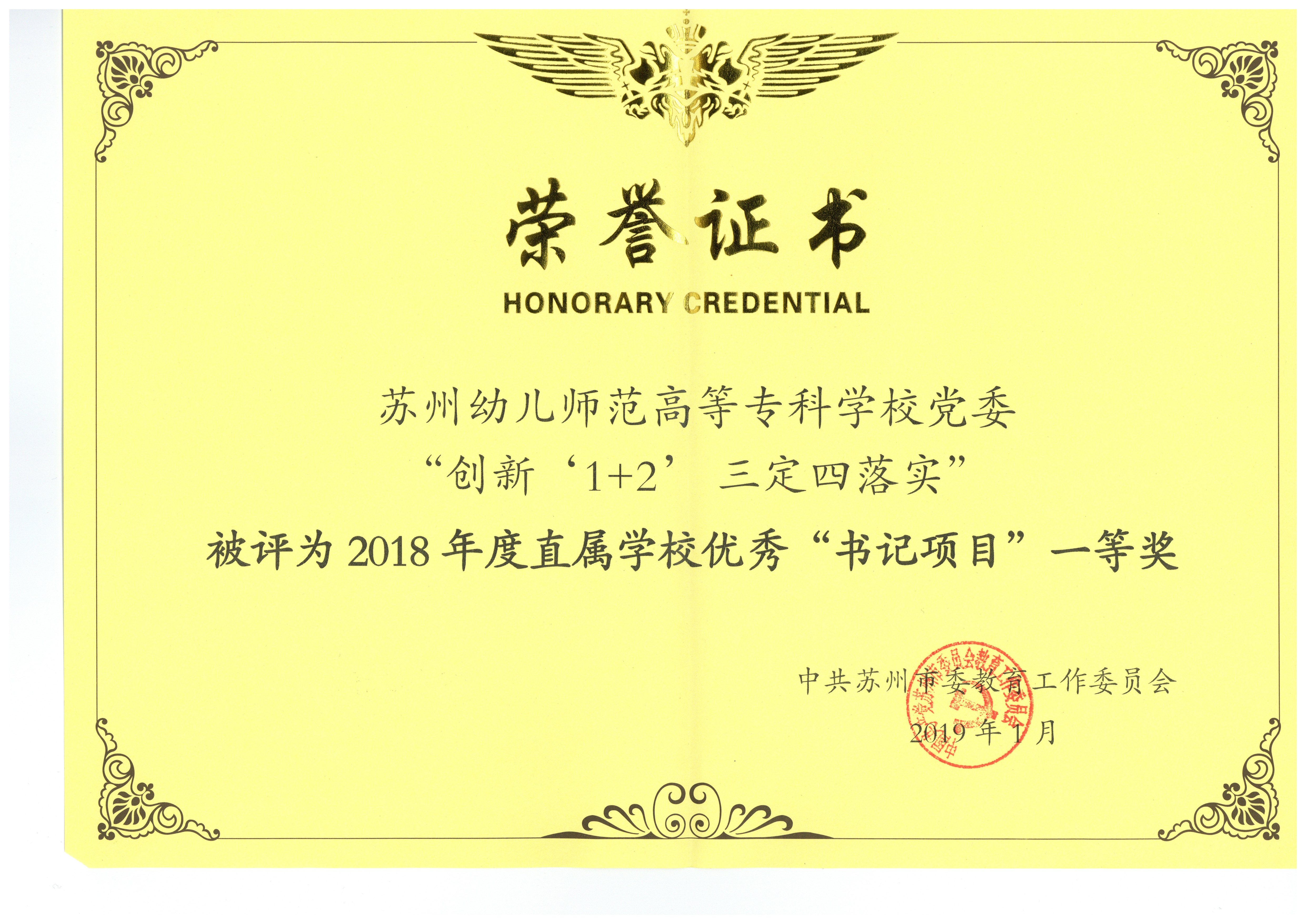 近期,市委教育工委公布了2018年度书记项目评选结果(苏教党工委〔2019〕6 号),我校的书记项目《创新1+2 三定四落实》喜获直属学校优秀书记项目一等奖。