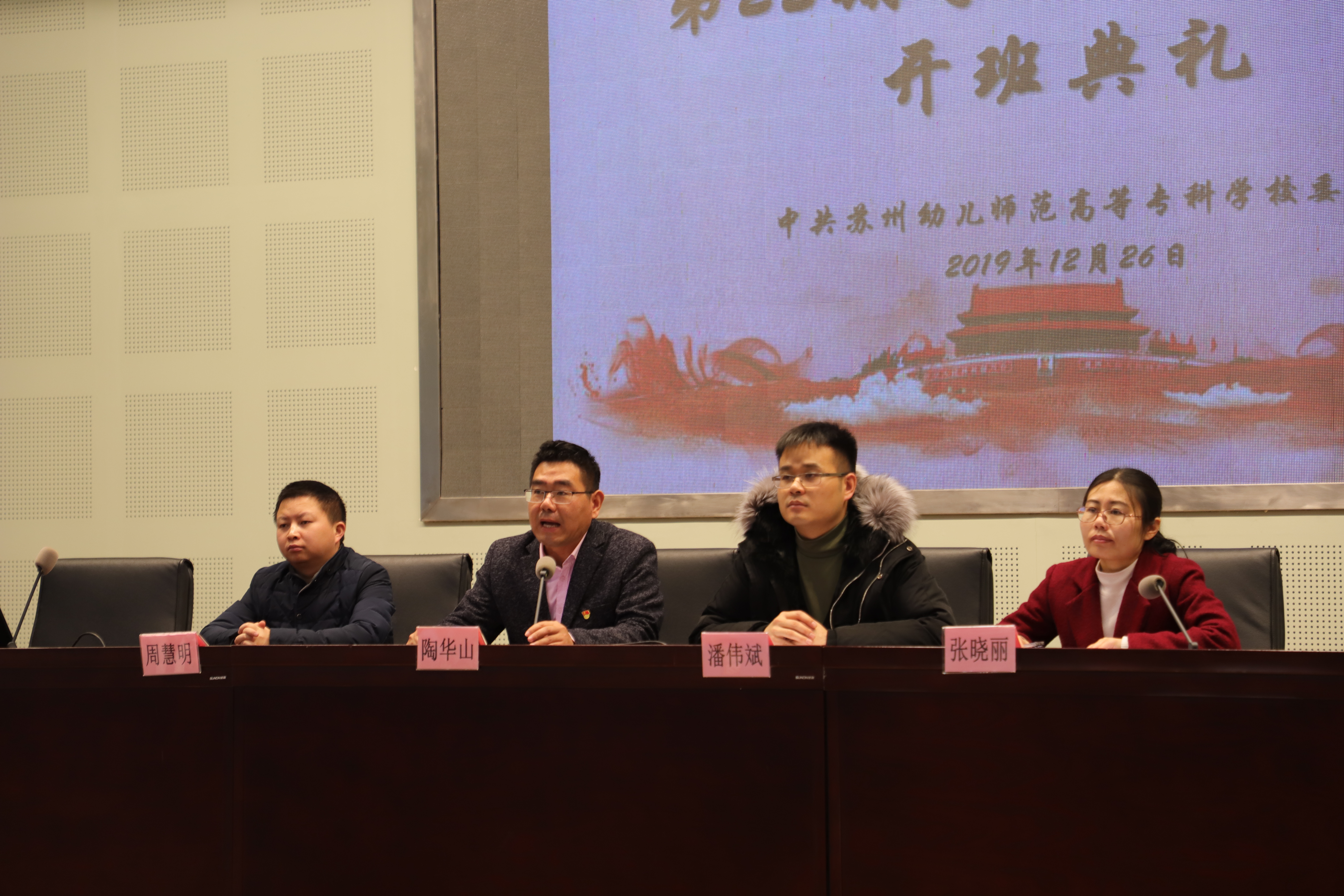 陶华山副校长为党训班开班典礼致辞。他首先代表校党委、校长室对本次党训班开班表示热烈的祝贺,对为本次党训班的顺利开班付出辛勤工作和努力的各处室部门表示衷心的感谢。陶校长指出,党训班是对学生进行党的基本知识教育,是中国共产党对党员和申请入党的积极分子进行共产主义理想信念教育的长效工作制度,也是我校加强师生思想政治教育工作的体现。