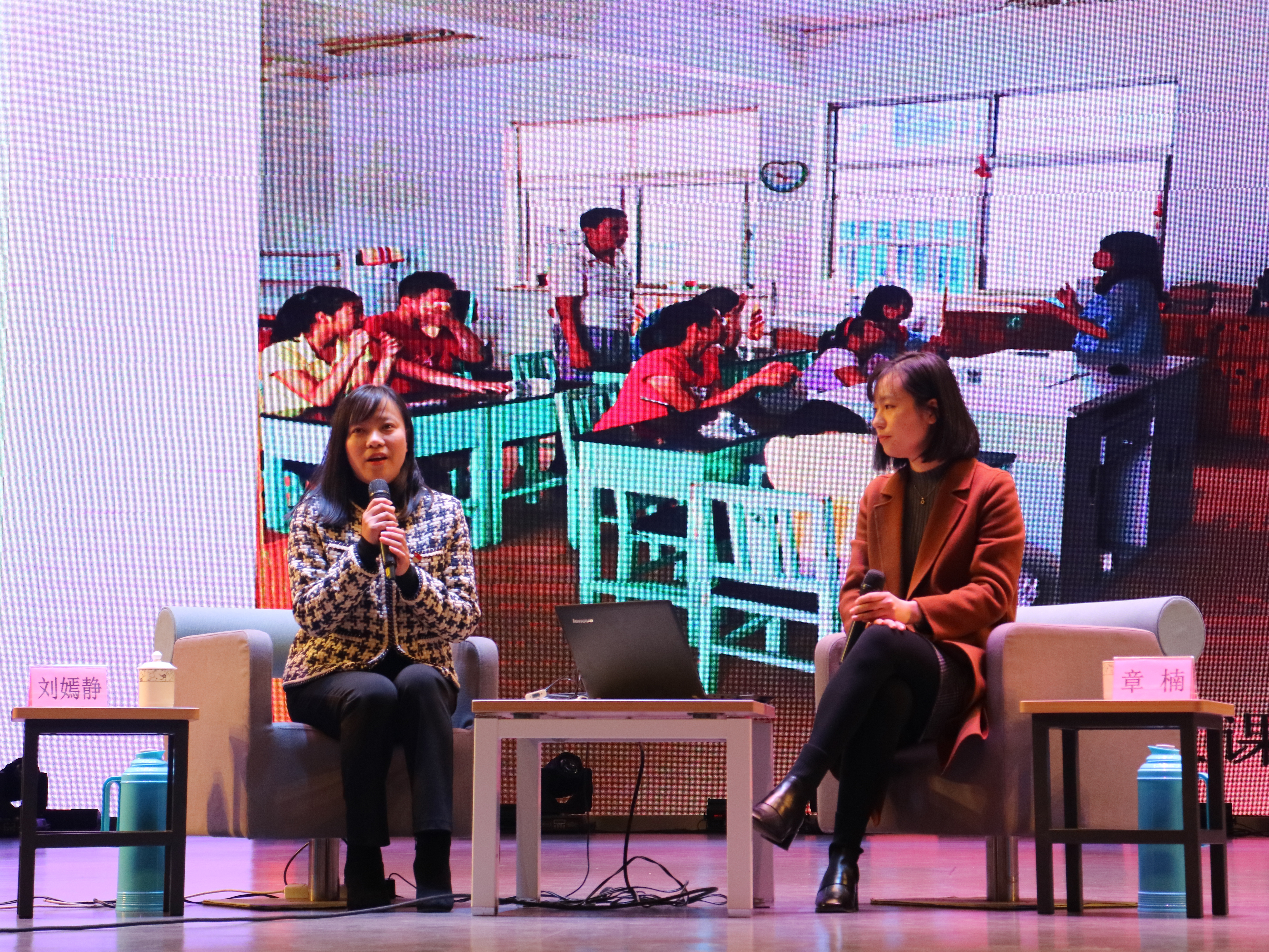 作为“榜样人物·育德课程”系列活动的开篇,今天下午15:30,学校特别邀请到93届优秀毕业生、全国先进工作者刘嫣静老师,与苏州干部学院章楠老师一起,为我校师生奉献了一场别开生面的访谈式师德故事报告会。