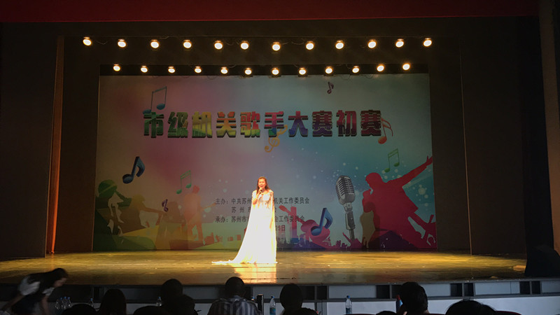 此次比赛由中共苏州市机关工作委员会、市总工会主办,苏州市市级机关工会委员会承办,规格高,平台新,竞争激烈。在场的40多位选手分别选唱美声、民族、通俗,各个实力不俗,演唱中频频获得掌声。孙老师第八个出场,将一首《梁祝新歌》演绎得婉转流畅,令人闻之如痴如醉。评委们给出了95.11的全场最高分,孙老师以美声组第一的身份进入决赛。